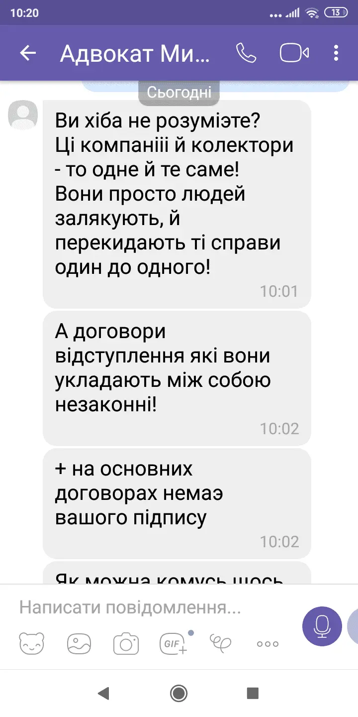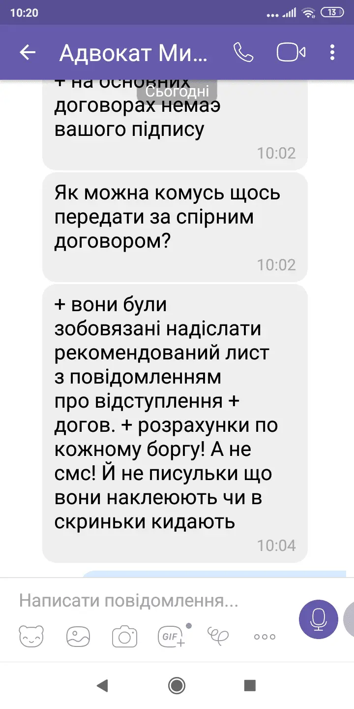 Мій хоче відправляти якісь там рекомендовані.Я сказала а сенс якщо мене половина вже продали колекторам.Ось його відповідь
