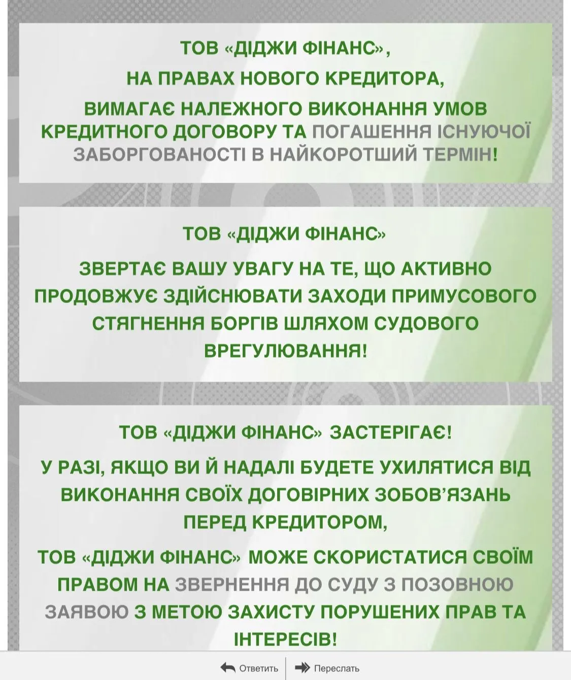 Здравствуйте) мне диджики вот такое прислали, уже второе письмо за месяц 🫣 хочу в сл. Месяце оплатить долг, но боюсь что они за этот месяц уже в суд пойдут 😀 вам не приходило подобное? Есть ли время у меня 🤔🫣