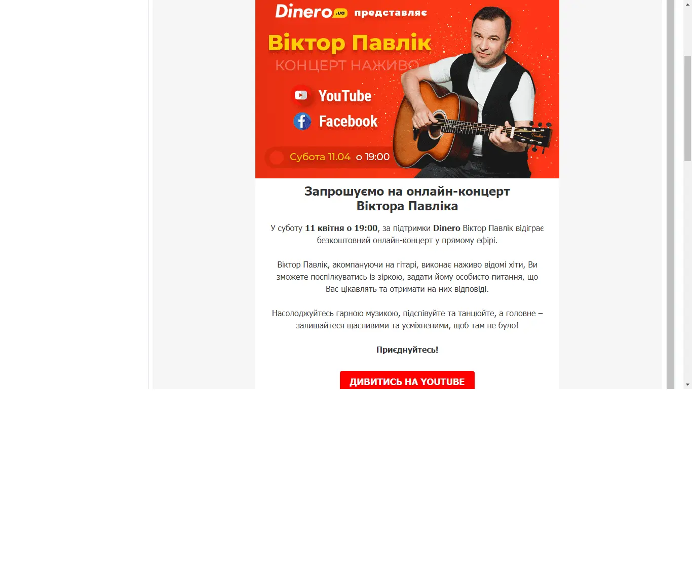 Такая же хня пришла. Лучше бы показательную казнь с участием Павлика устроили. Убогие, блинДинеровцы приглашали на концерт Виктора ПавлЫка!
