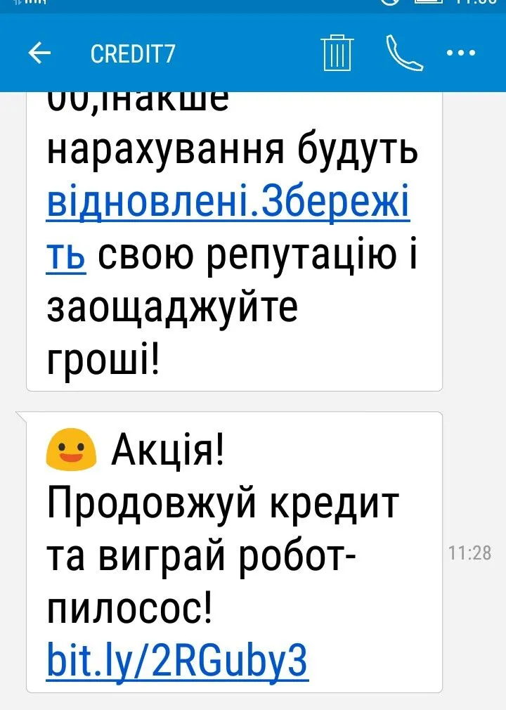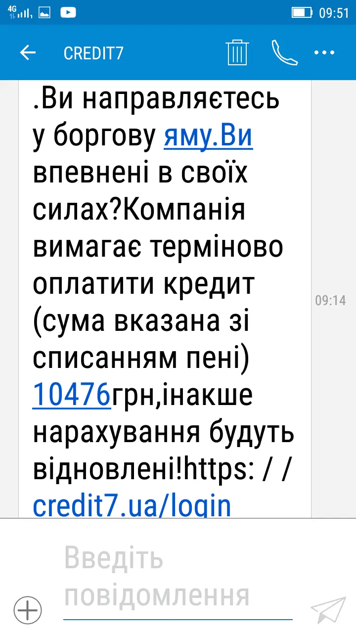 От під.. ри ?Мне с Credit 7 сегодня тоже пришло смс вот такое