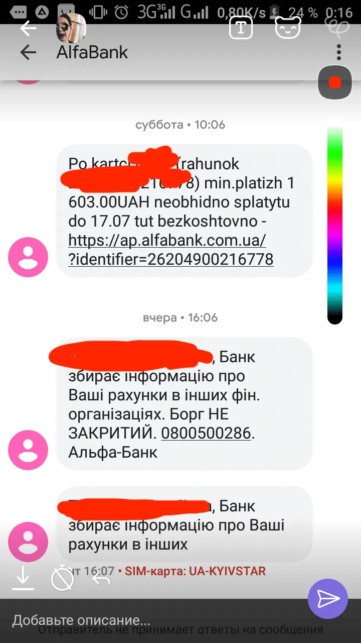 МдааааУ Альфы кредит не брал, но скажу, что это шарага ещё та. Помню в инете рассказывали о случае, когда парню заблокировали сим-карту, а новую на его имя выпустил мошенник, без труда взломал его аккаунт в их онлайн банкинге, взял на него кредит и вывел средства. Парень пытаться разобраться с банком, но им было наплевать на то, что у них слабая степень защиты, ежедневно звонили ему и крылю уями, заставляя вернуть кредит. И это банк с лицензией НБУ. Я уею с этих маромоев!