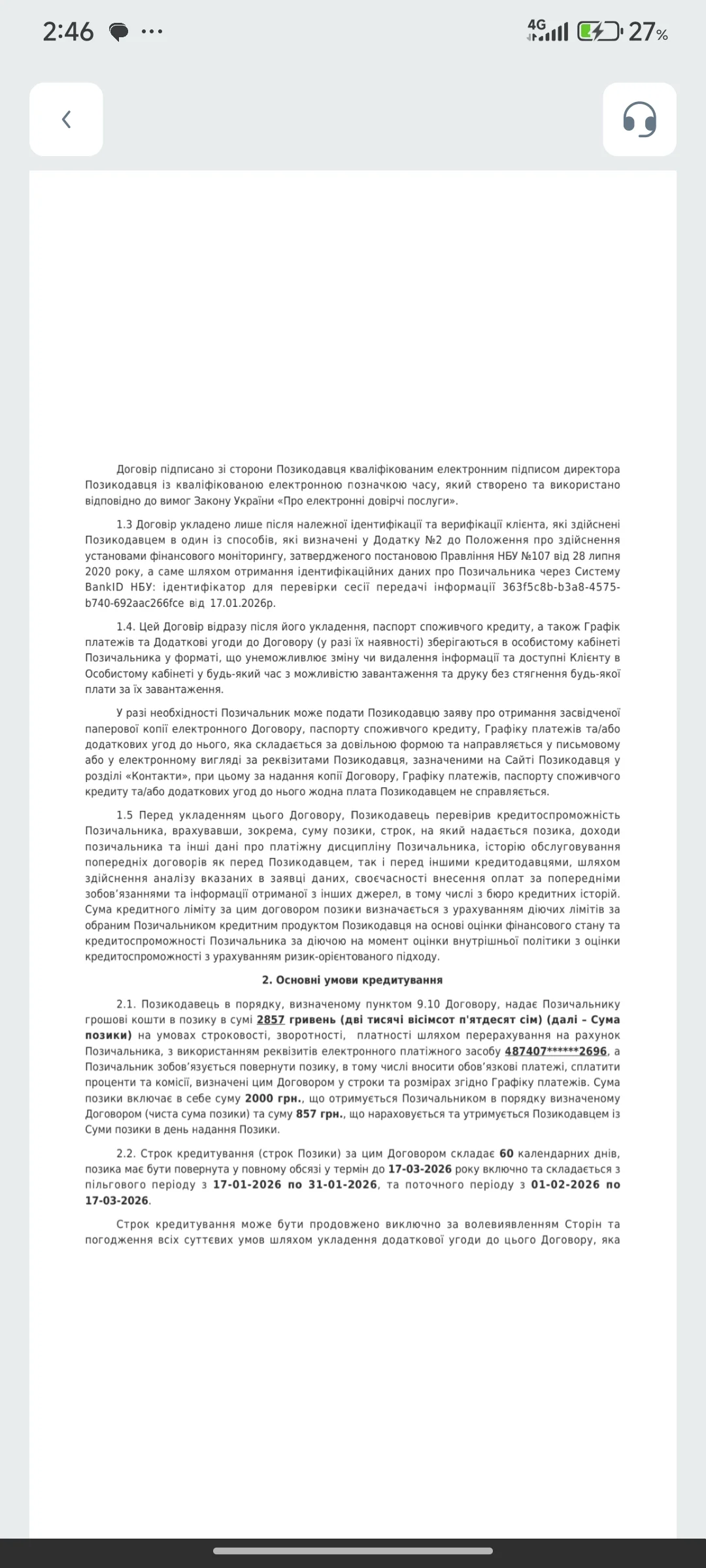 Взяв в є гроші займ. На їхньому сайті я оформлював займ на 2800 під 001 відсоток на 15 днів . Вони мені скидають тільки 2000 грн я заходжу на сайт написати в підтримку і бачу таку картину я був повинен 3200 хоча ми так не домовлялися. Захожу в оферту, і там написано що я взяв займ на 60 днів під 0,83 відсотків в день. Вони підробили умови в оферті ти 800 грн які мені не скинули в документах написано що це комісія за надання кредиту. Я писав у підтримку мене просто морозили завжди. На юриста у мене не було коштів прийшлося відати цім шахраям накручені проценти по сроку + комісія 200 грн заплатив як л0х повний якось так.