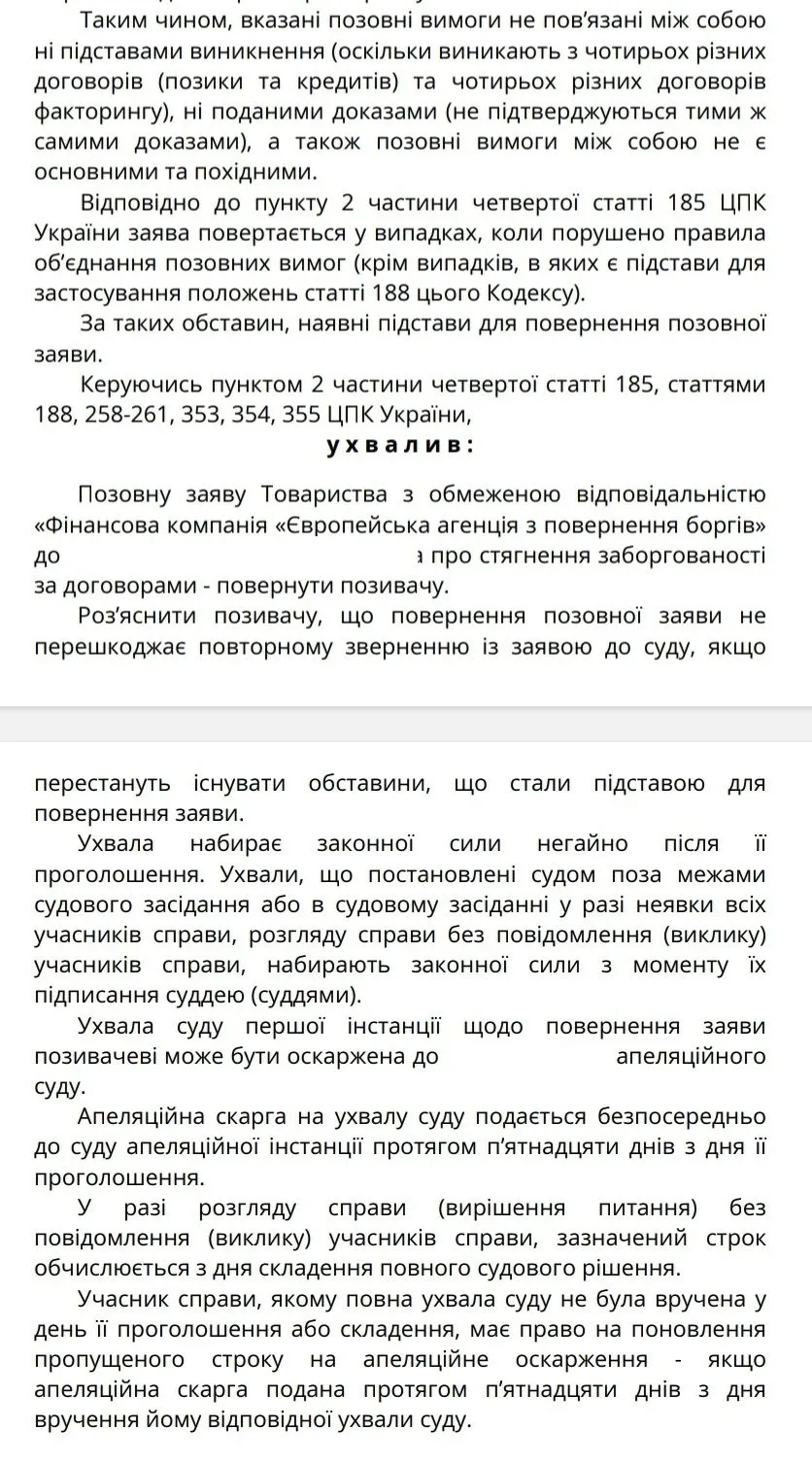 Добрий день всім. Нещодавно отримав листа, що ТОВ ФК ЄАПБ подав позов до суду, але суд ухвалив таке рішення(прикріпив скріншот нижче). Чи варто вже зараз звертатися за допомогою до юриста або варто чекати повторної подачі заяви?