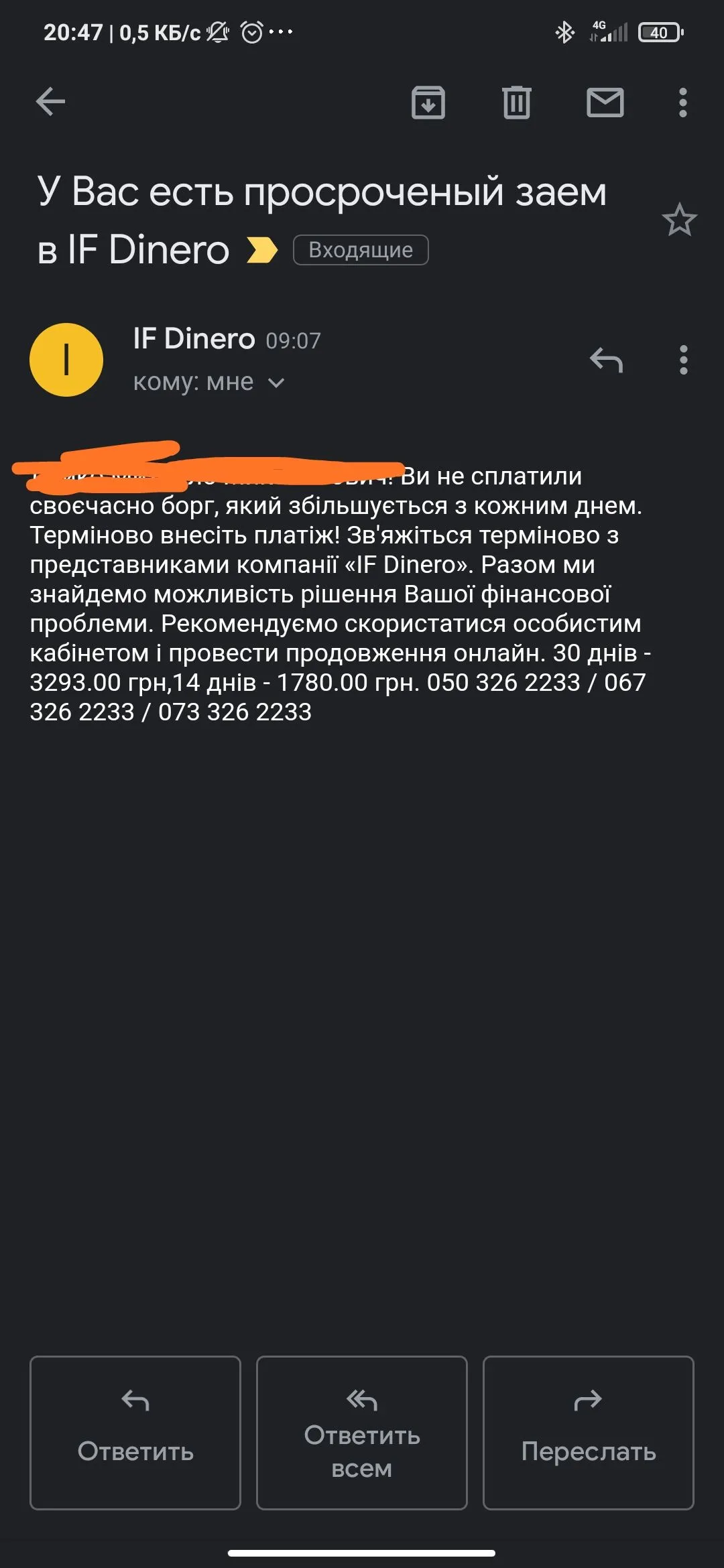 Вот такое, а ещё на почту прислали что 25 числа переуступят кому-то, жаль удалил)