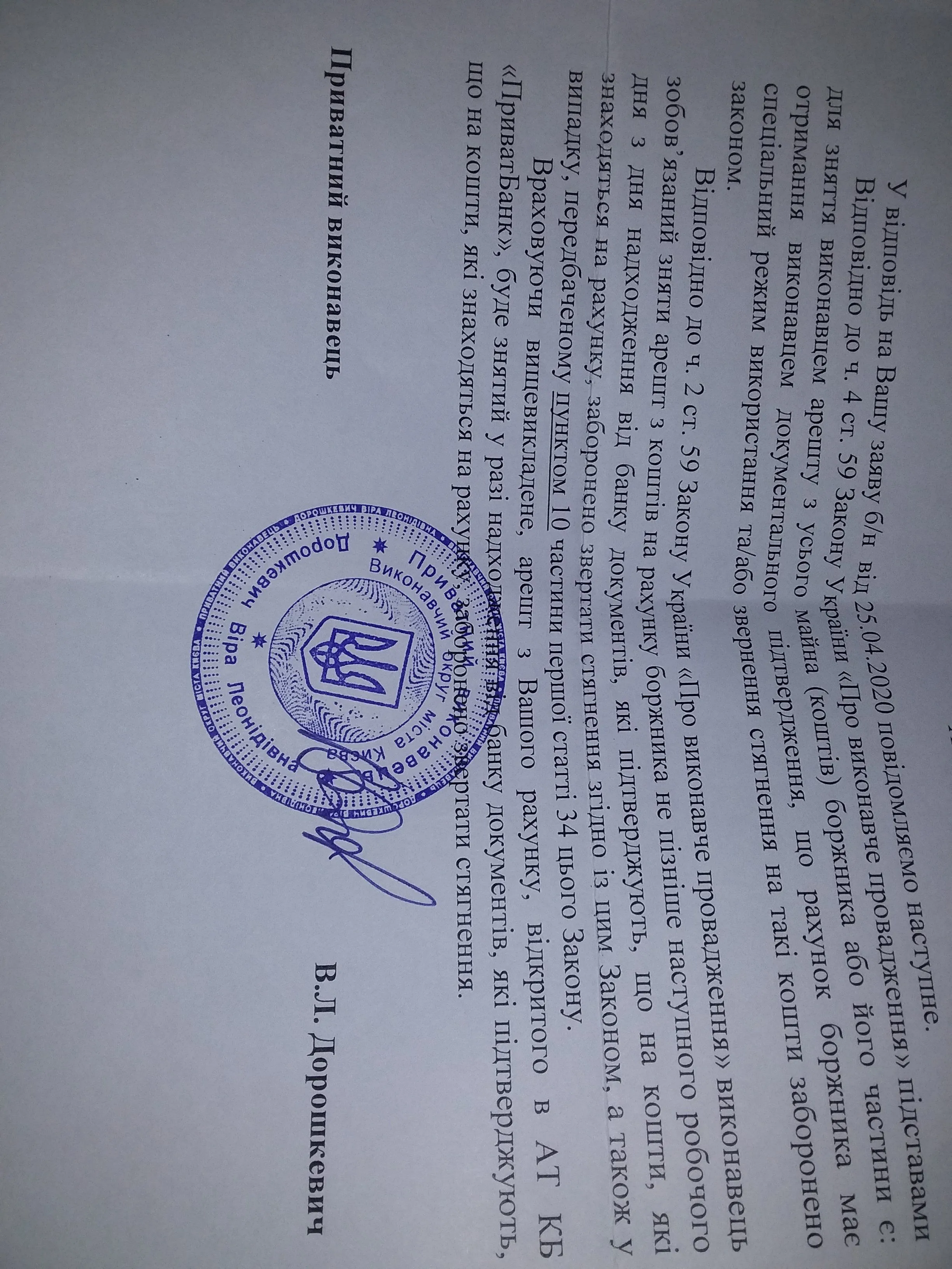 8 мая отправила Дорошкевич заяву о снятии ареста с заблоченных карт двух банков..получила она их 14..