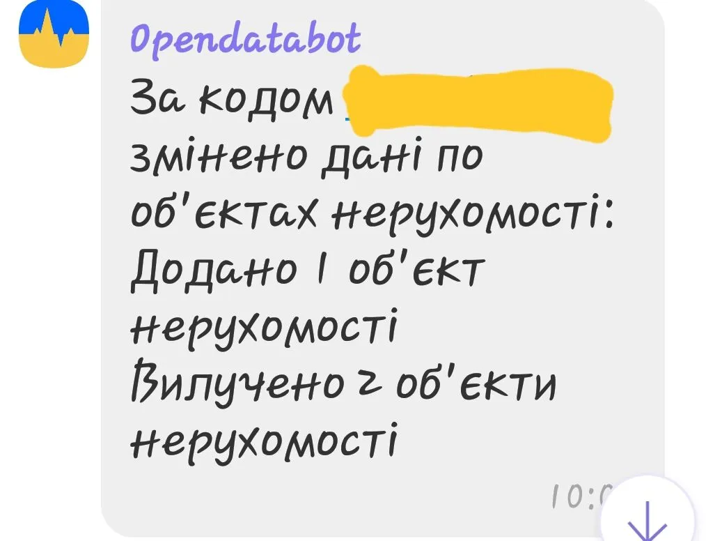 Мені теж таке прилетіло. Додано об'єкт нерухомості і вилучено об'єкт нерухомості. Потім прийшло вибачення від телеграм бота.