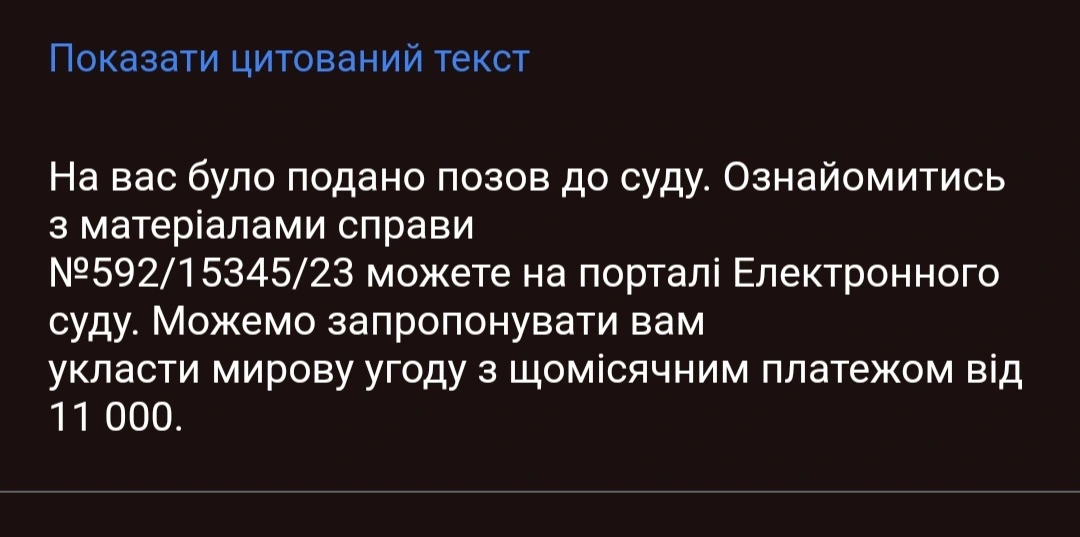 А почалось все з того, що рік не заходила в Дію. Перед війною взяла у КредитПлюс 25000 на операцію мамі, гроші повинні бути негайно. Почалась війна, з роботи скорочення і пішло поїхало. Виїхали за кордон, забулося за той кредит і вони молчать ( хоча телефон у роумінгу був доступний). Повернулися з за кордону, ну і змінила паспорт на Id картку, дай думаю зайду в Дію, подивлюся як справи. І тут натрапляю на те, що Фінтраст Україна подали до суду. Але подали в один суд, а перенесли у інший, який по моїм підрахунками повинен бути 28 жовтня. 5 сутки не сплю, ніхрена не їм. Бо просто немає віддавати таких коштів. Звернулася до адвоката, він сказав, що дела хрєнові, тепер зовсім розклеялась і навіть не знаю чого чекати. Перший раз с там стикаються. Зганяла в суд, ознайомитись с матеріалами, написано тіпа "в приложении они мне предлагали рассрочку заплатить просто тело" но ніфіга не приходило, ні на пошту, ні листами, навіть ніхто не телефонував. Може було в когось таке, можете поділитися. Боюсь що буду жити на вулиці з мєсними алкашами...