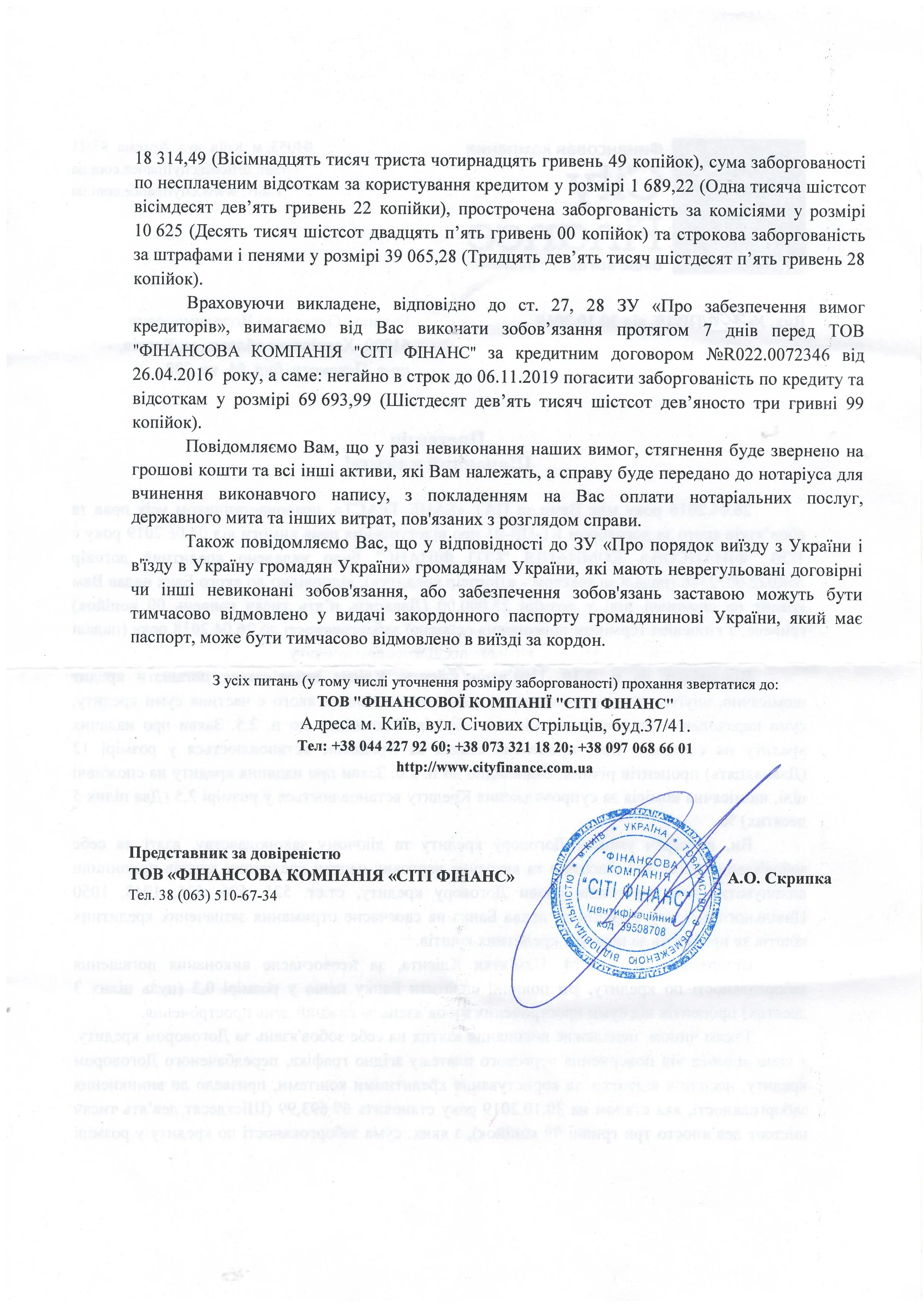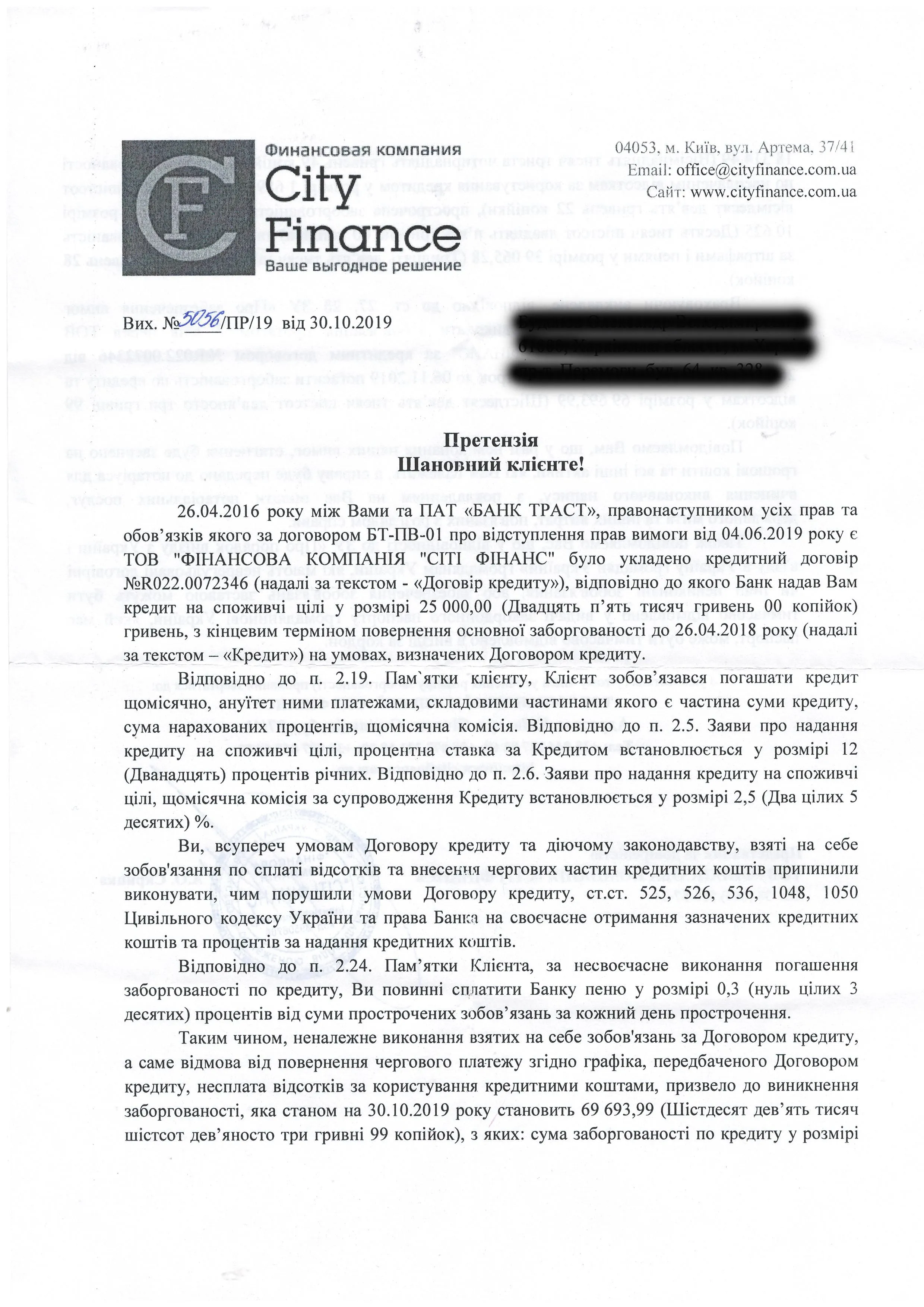 Вчера на почте заказным письмом получил Претензию от СитиФинанс , печать подпись есть.