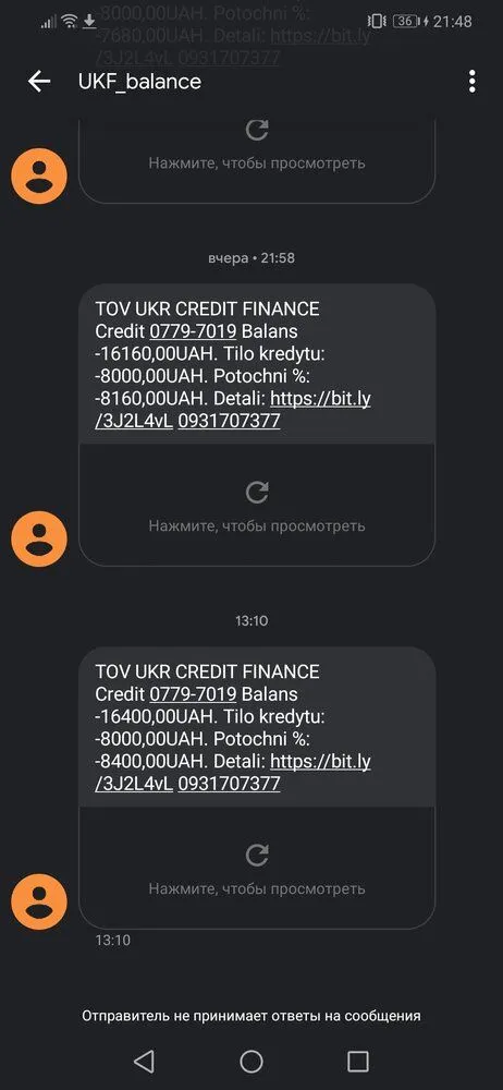 Credit ### Balans -32500,00UAH. Tilo kredytu: -10000,00UAH. Potochni %: -22500,00UAH. Detali 0931707377