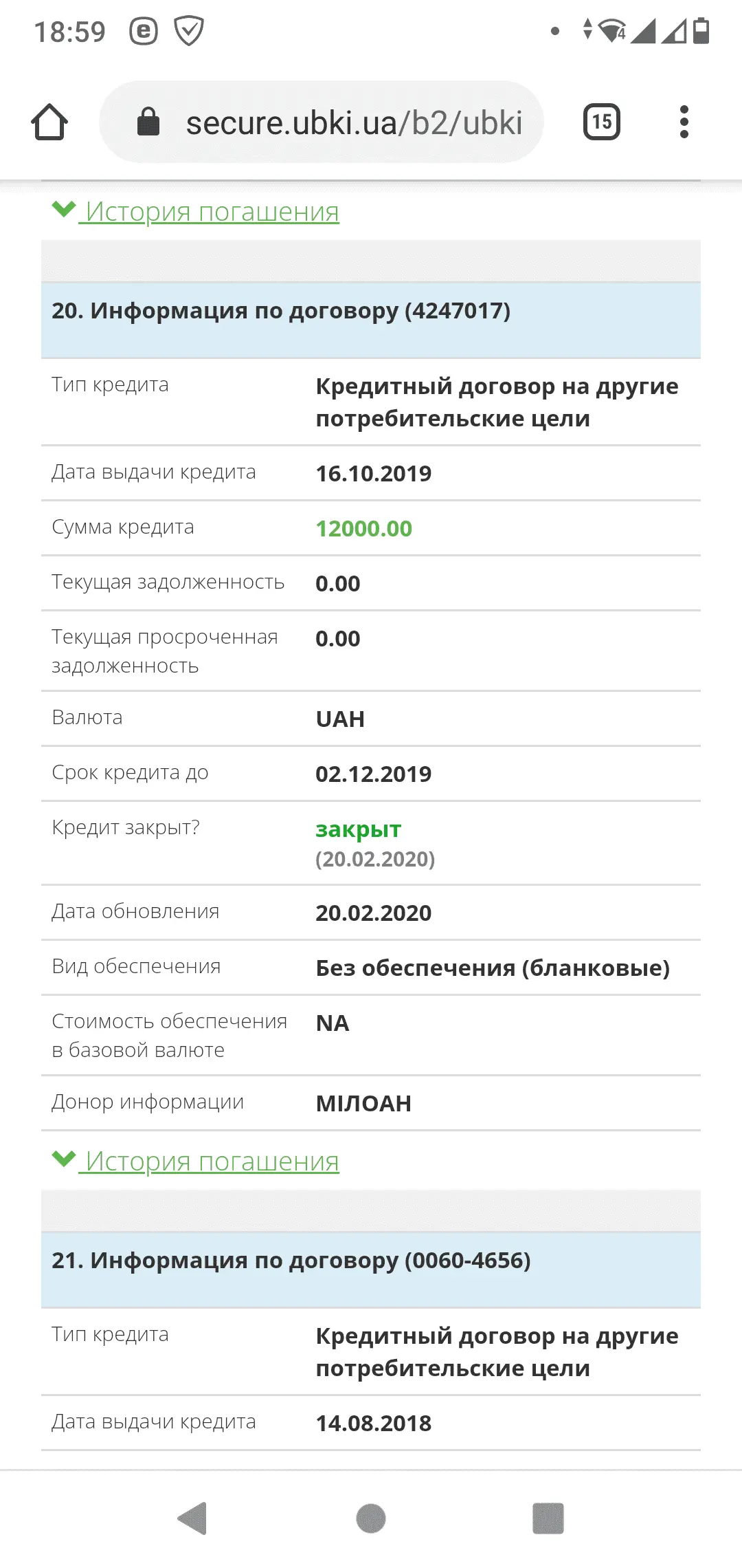 Только что выгрузила свою кред. историю. А тут написано что миолан закрыт. Не могу понять как так могло получиться, если я его не погашала. И закрыт ли он на самом деле, как понять.