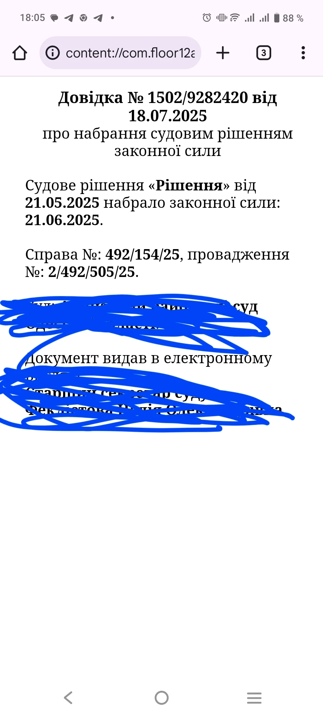Прикріленна довідка до рішення ,що вступило в силу 21.06.25