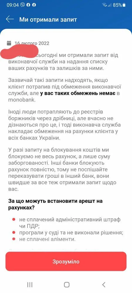 Запит від виконавчої служби на надання списку рахунків та залишків за ними