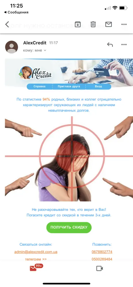 У меня несколько дней одно смс только .А Сслоан бесятся,просрочка два дня нашли бывшего мужа уже просили на связь выйти .Просрочка не знаю какой день