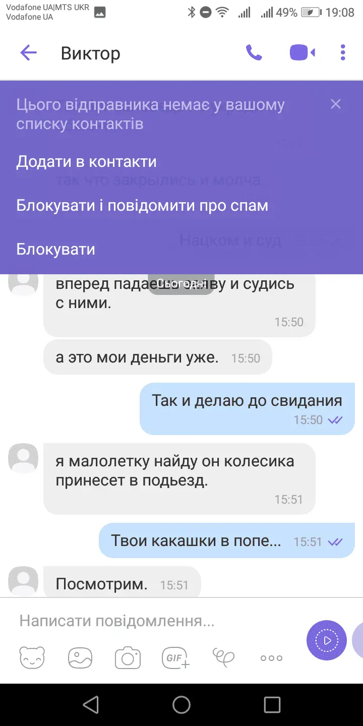 Сначала двери гомном обмажут. Теперь он уже бывший боецТорнадо... Короче сто ни минута то новость. А я и так не ведусь.. Сегодня било просто настроение решила ответить Не звонил вообще сразу в вайбер