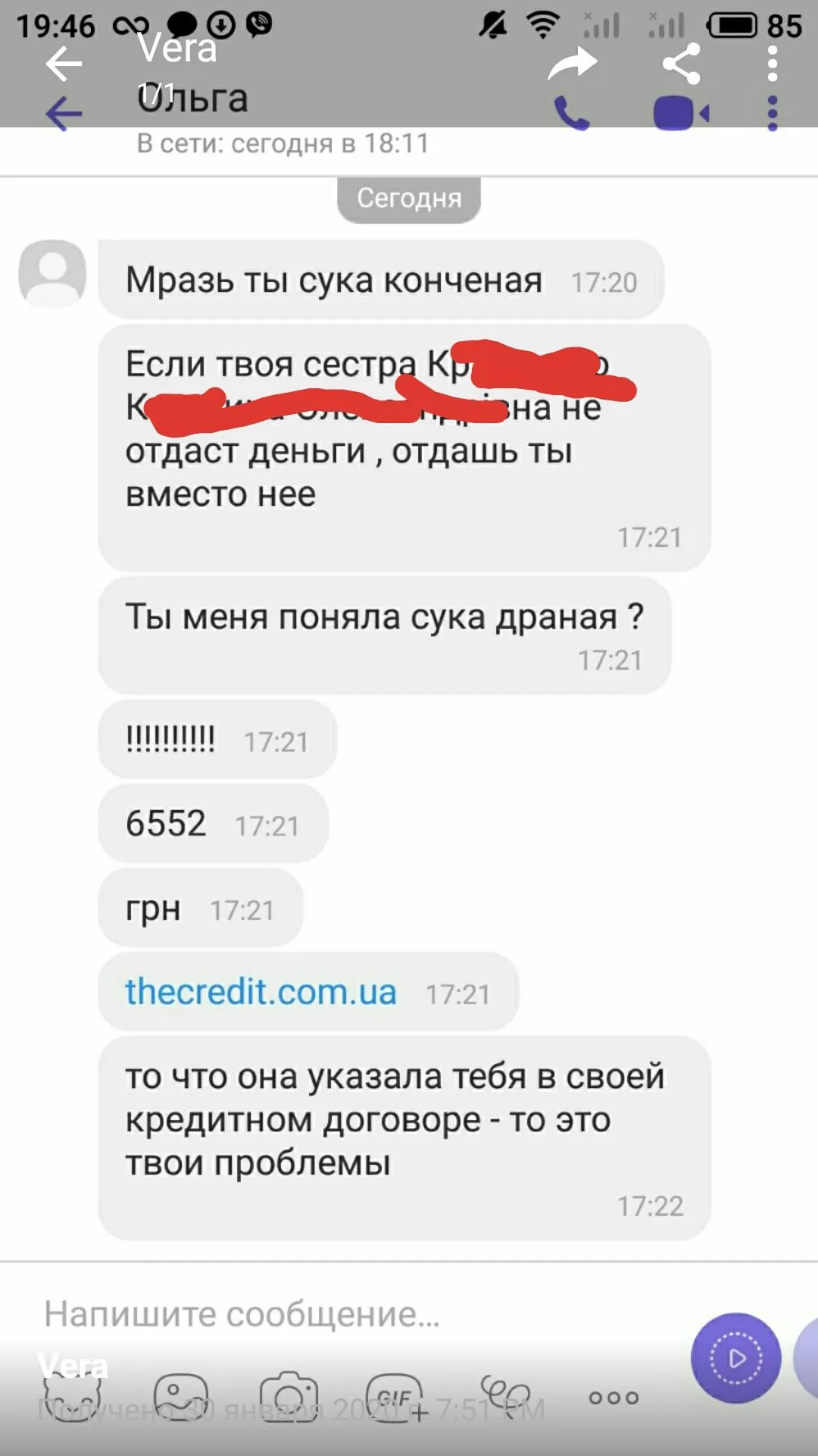 Так, про ваш The кредит тут иеж була темкаА у меня вот,соседке отправили...подскажите,кто вкурсе,если они указали себя в сообщении,кому жаловаться в полицию,на урядову..?