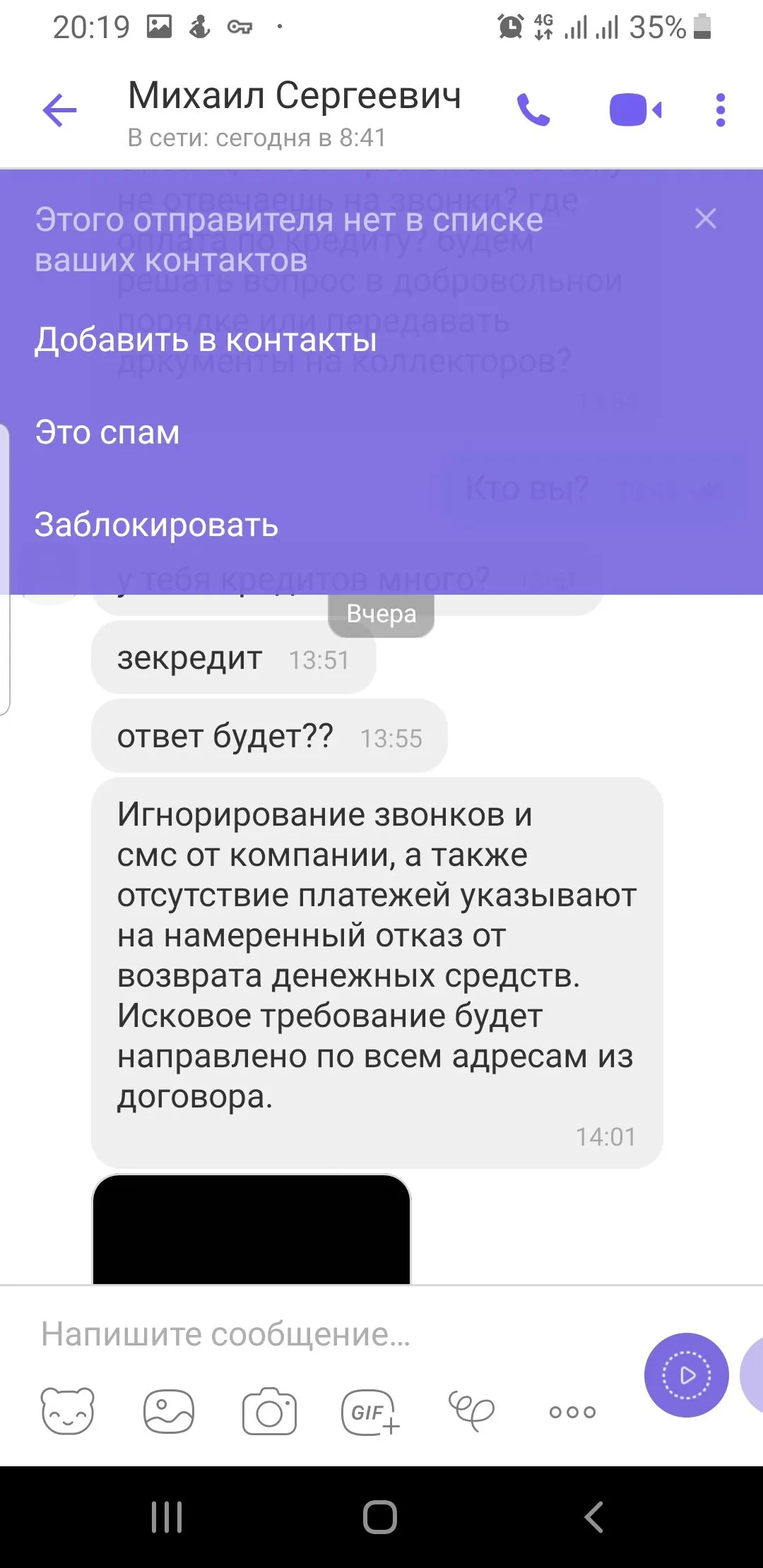 Пугают))Ребят кто связан тоже с Зекредит? Приходило ли вам такое?
