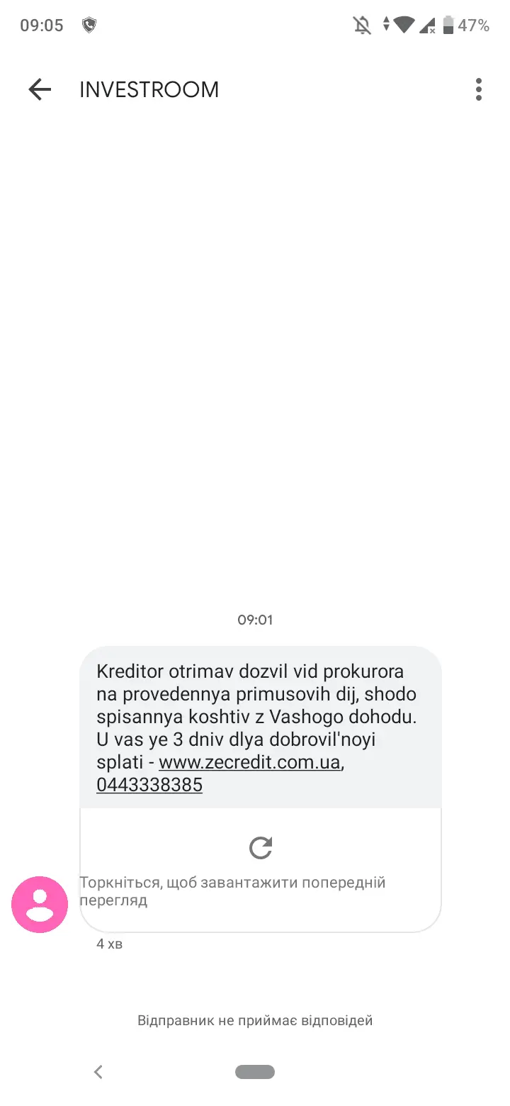 Уважаемые форумчани, подскажите пожалуйста!!! Зекридит прислал сообщение! Как на него реагировать!? У кого было такое же и кто может подсказать как реагировать!? Где себя искать, стоит ли звонит или это очередные пугалки!?